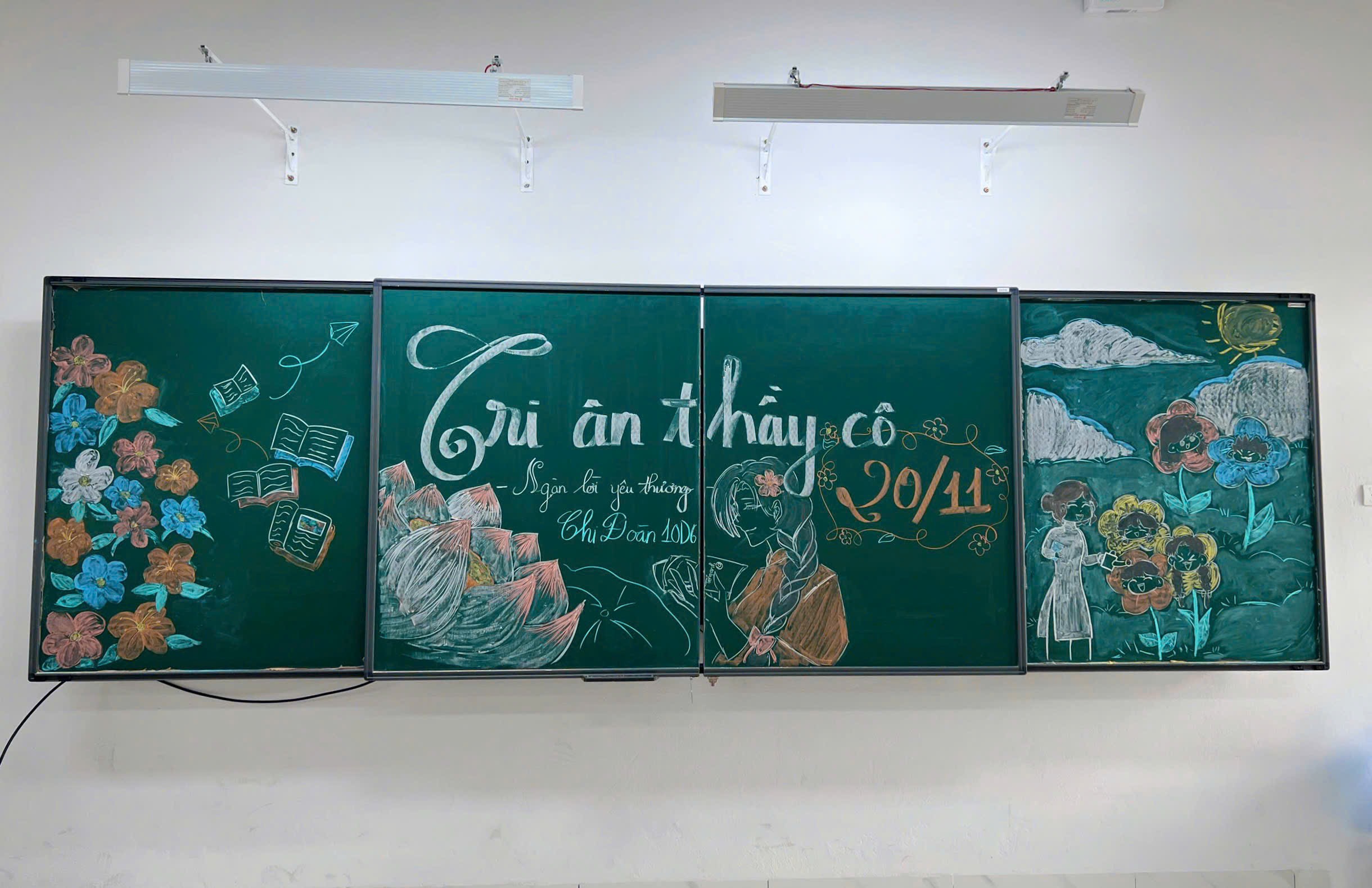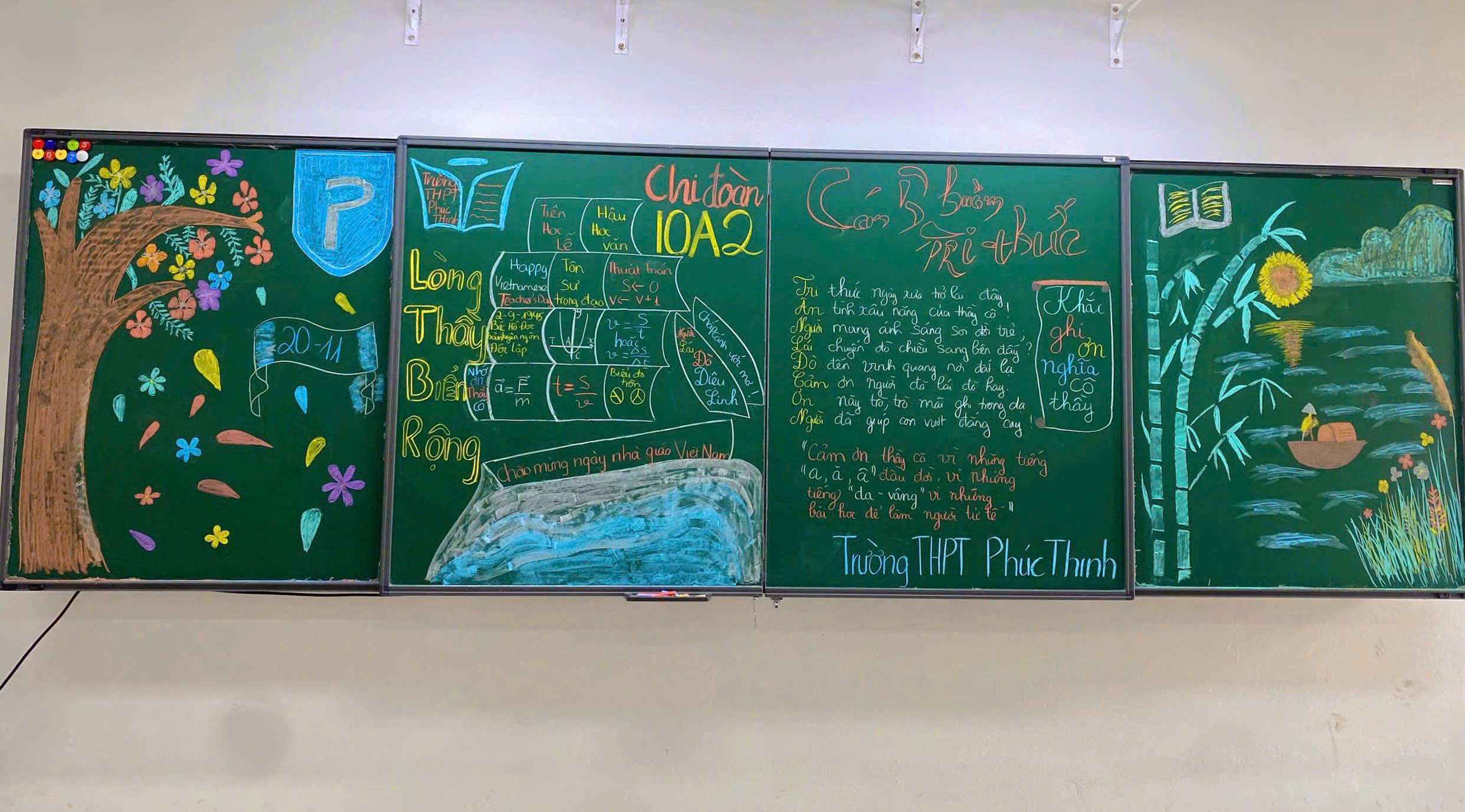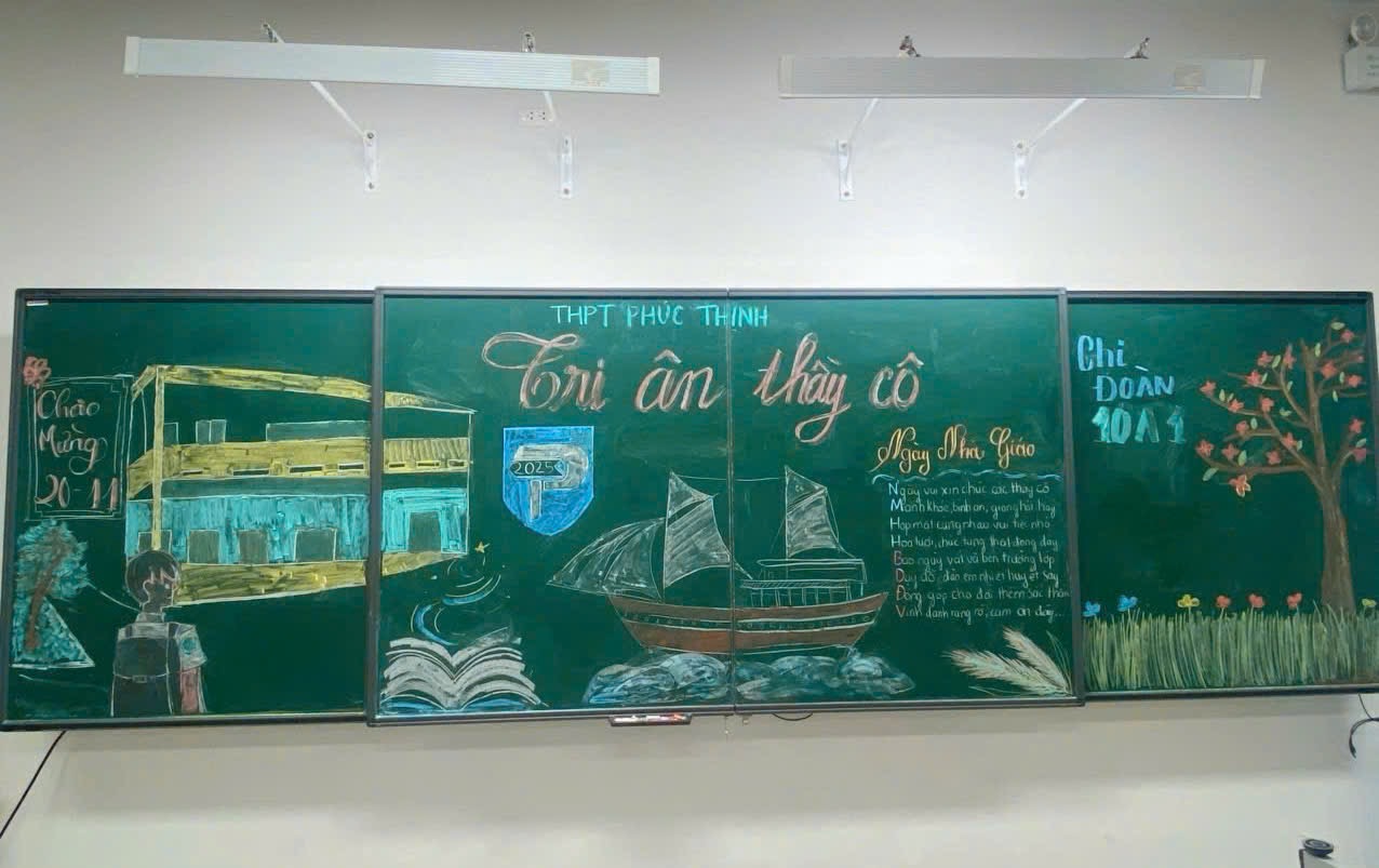 Hướng tới kỷ niệm Ngày Nhà giáo Việt Nam 20/11, các tập thể lớp trong trường đã đồng loạt thực hiện trang trí bảng lớp với nhiều ý tưởng sáng tạo và đầy màu sắc. Từ những nét vẽ tỉ mỉ, những câu chúc, những bài thơ ý nghĩa, đến cách phối màu tinh tế, tất cả đã tạo nên không khí rộn ràng, ấm áp trong từng lớp học. Mỗi tấm bảng là một thông điệp tri ân gửi đến thầy cô – những người tận tâm gieo chữ, thắp sáng ước mơ cho học trò.