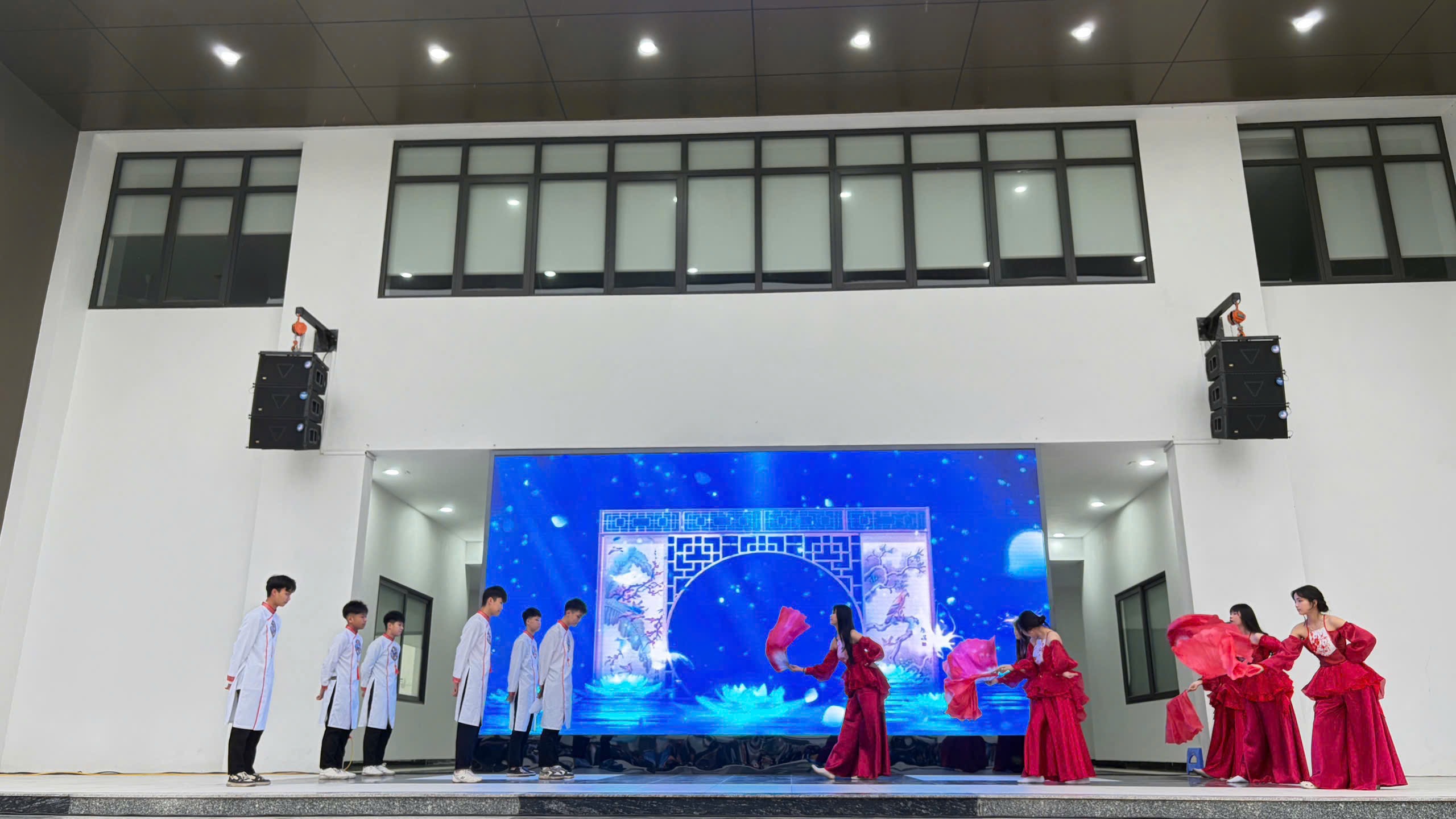 Phần văn nghệ tạo điểm nhấn với tiết mục "Tết sum vầy" đến từ Chi đoàn 10D7; tiết mục múa "Đón xuân” đến từ Chi đoàn 10D6