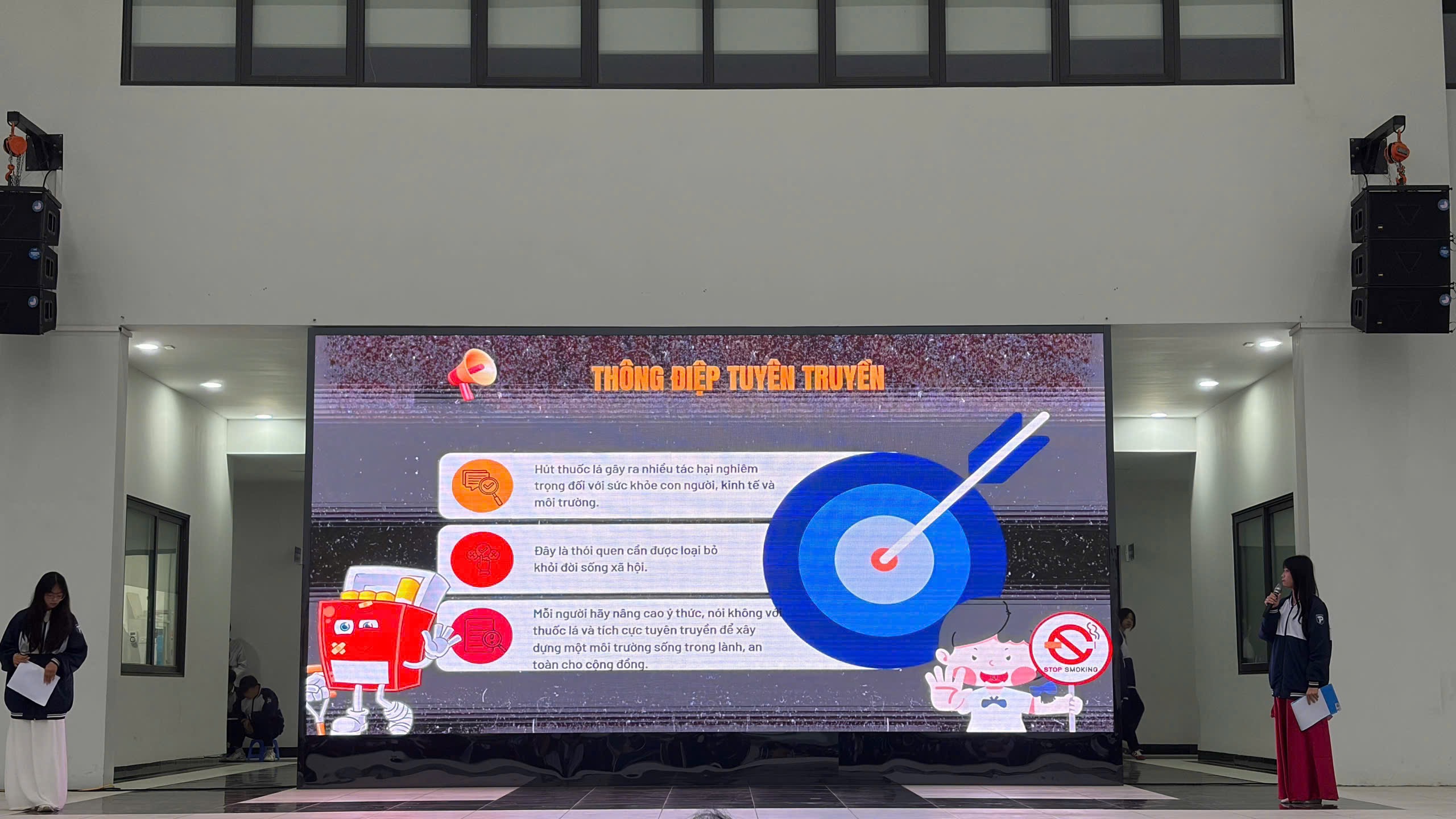 Nội dung chương trình được triển khai sinh động, gần gũi thông qua video, kịch tuyên truyền. Phần giao lưu qua câu hỏi từ 2 Chi đoàn trực tuần giúp học sinh toàn trường nâng cao nhận thức và trang bị kiến thức cần thiết để phòng chống hút thuốc lá trong học sinh THPT.