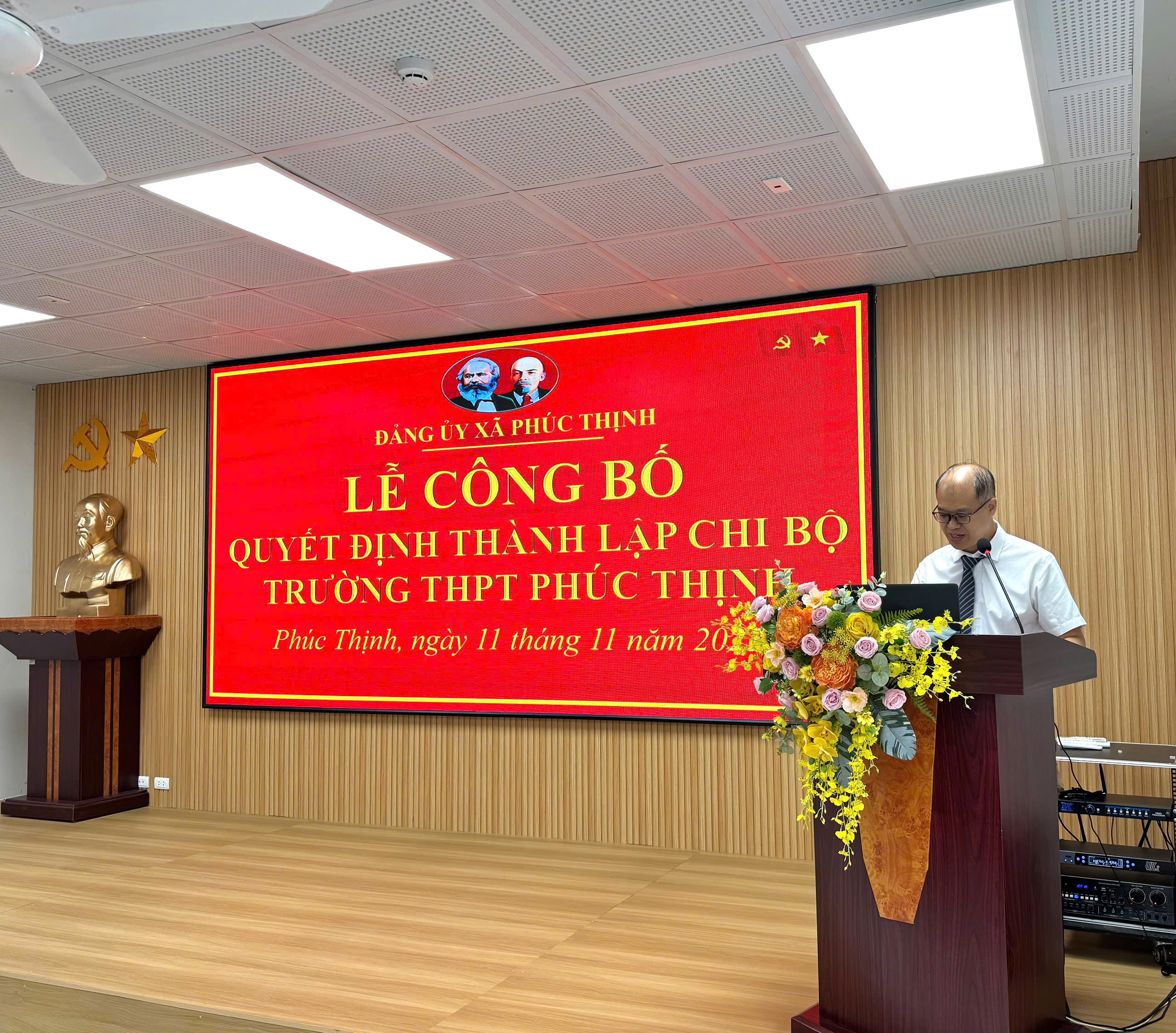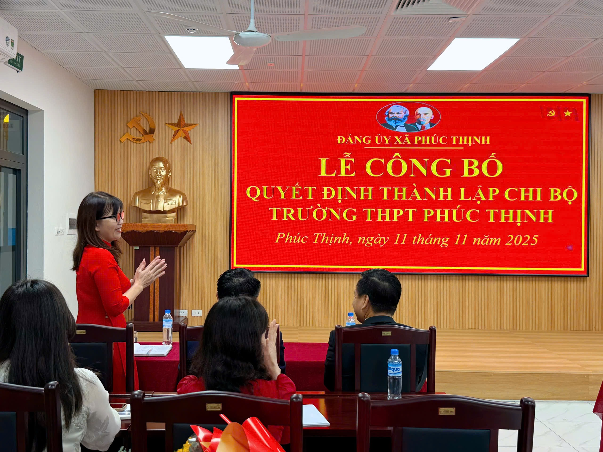 Sáng ngày 11/11/2025, tại trường THPT Phúc Thịnh, Đảng ủy xã Phúc Thịnh trang trọng công bố Quyết định thành lập Chi bộ Trường THPT Phúc Thịnh.