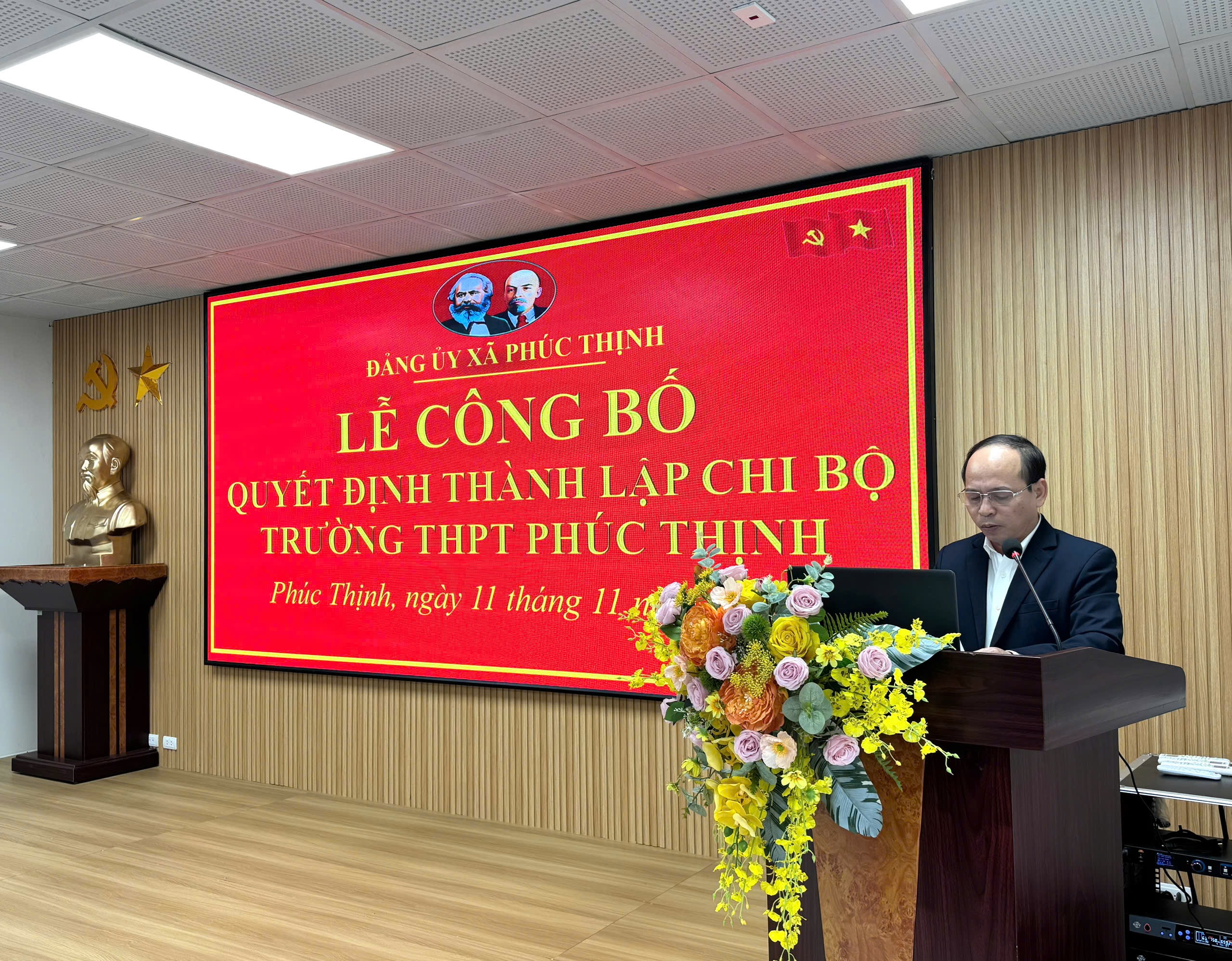 Đồng chí Nguyễn Văn Nhân – Phó trưởng Ban Xây dựng Đảng, công bố Quyết định thành lập Chi bộ trường THPT Phúc Thịnh