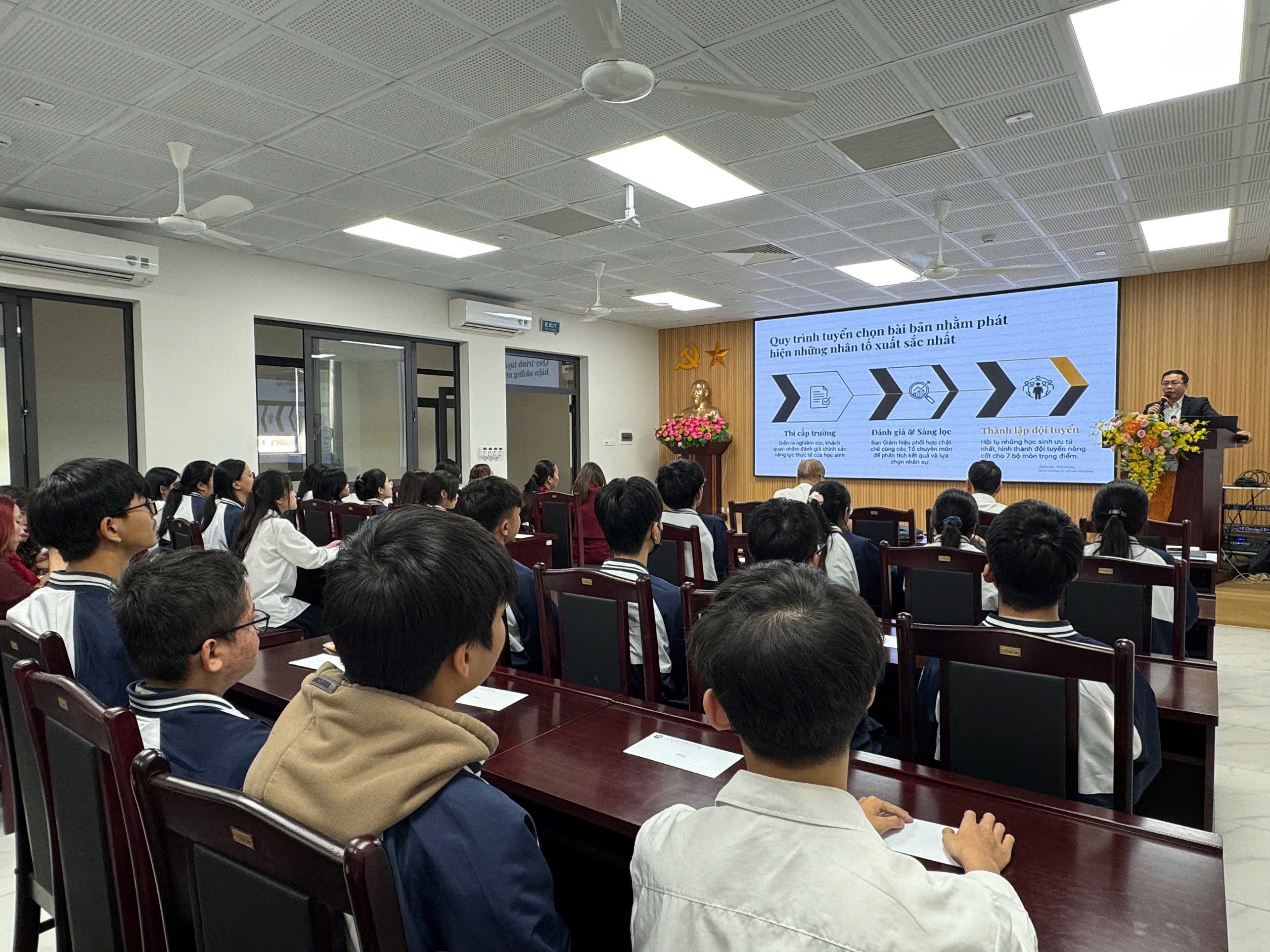 Nhà trường tin rằng, với tinh thần khiêm tốn, cầu thị và ham học hỏi, các em học sinh sẽ có những trải nghiệm ý nghĩa, mở rộng thêm kiến thức. Chúc đội tuyển có một kỳ thi thật tốt đẹp, giao lưu học hỏi nhiều điều bổ ích và mang về những kỷ niệm đáng nhớ!