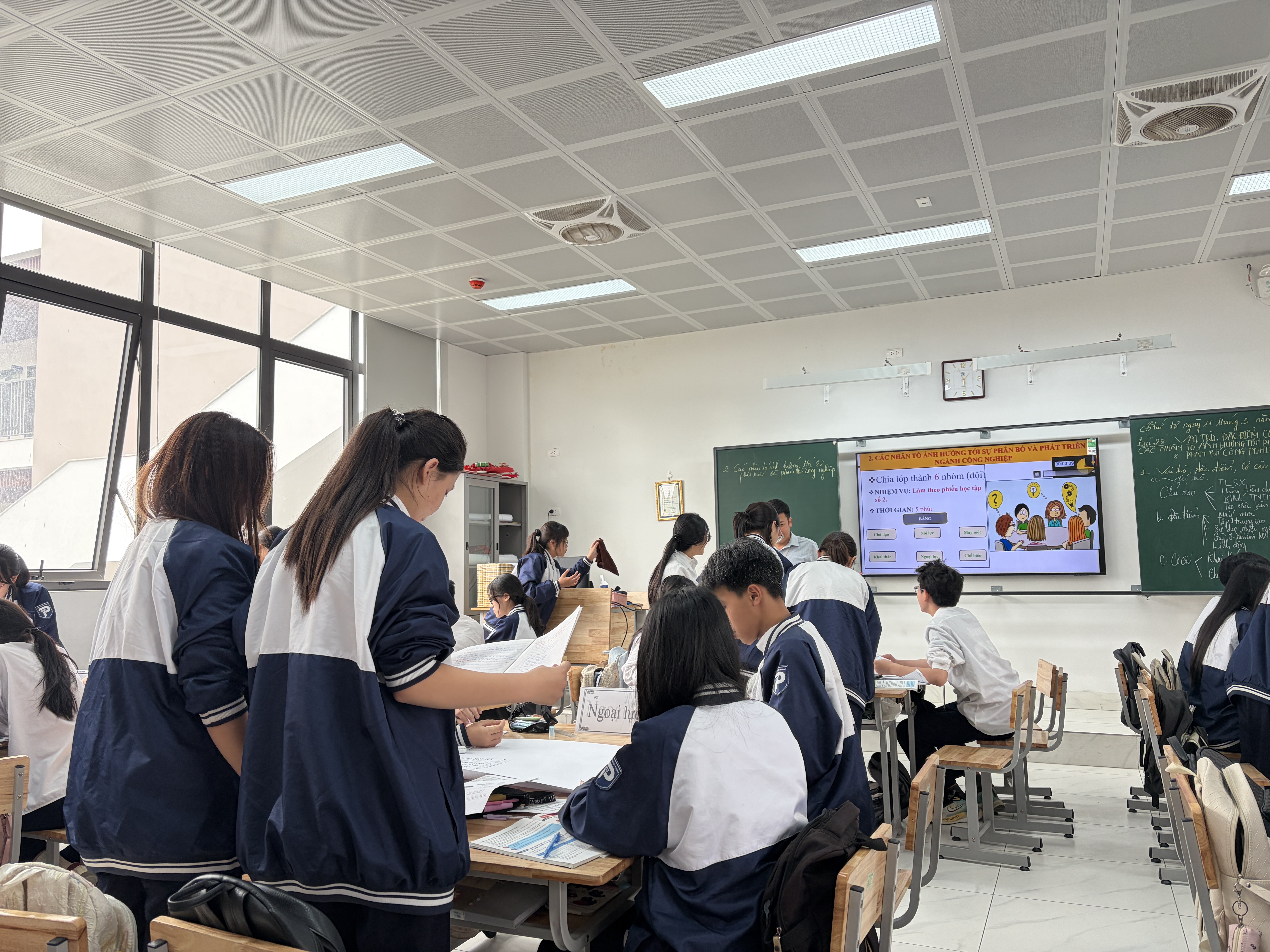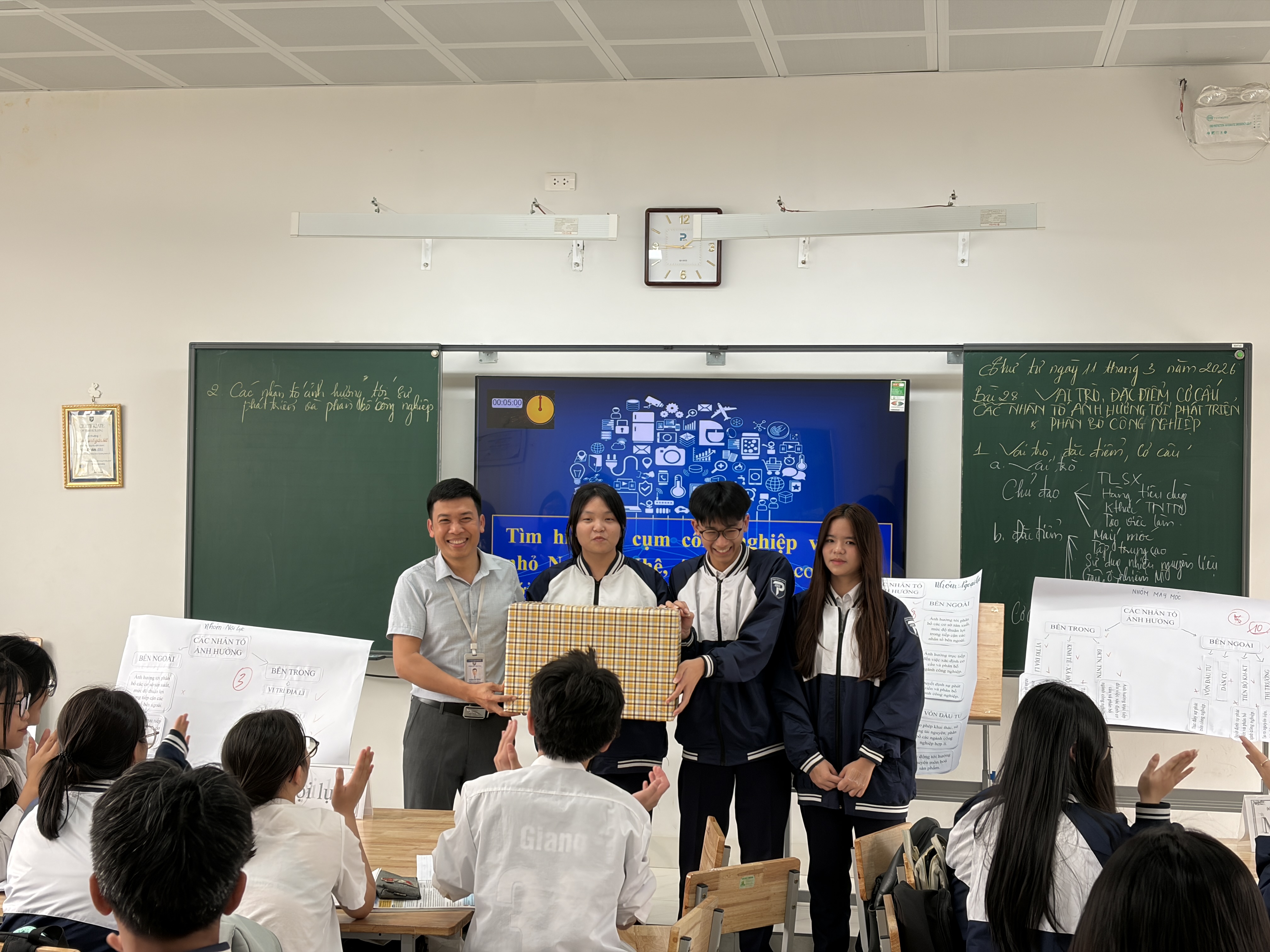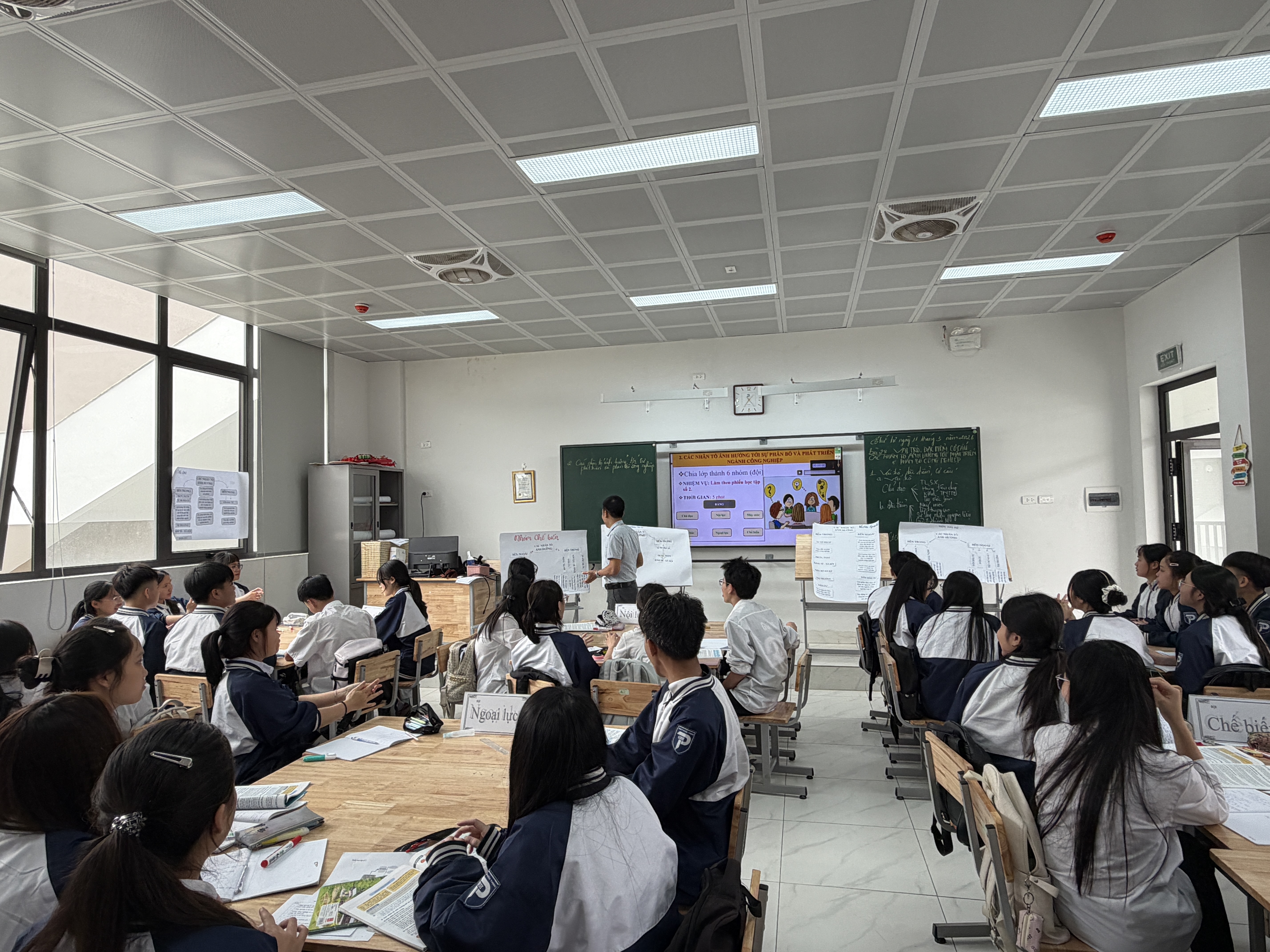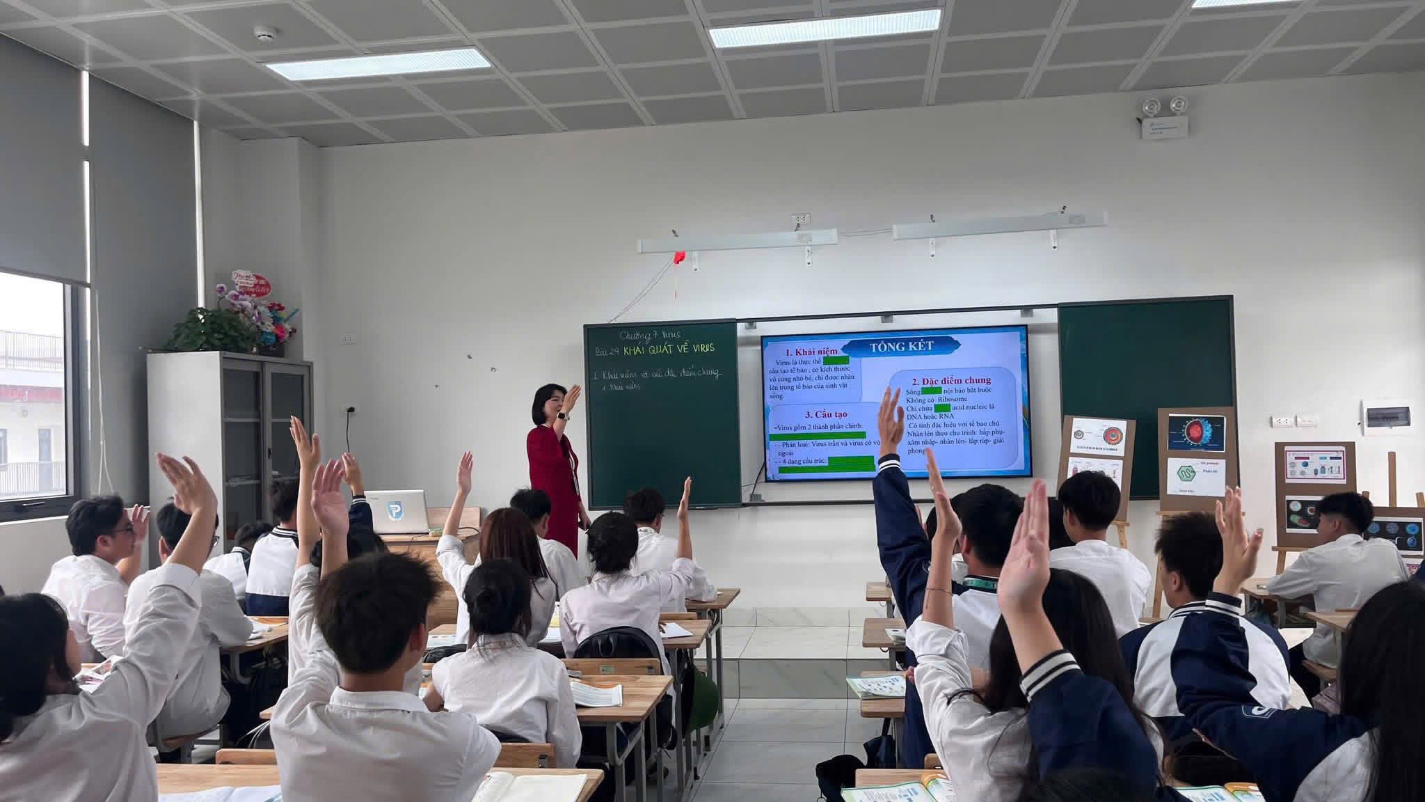 Môn Sinh học 10 – Bài: "Khái quát về virus" do cô Nguyễn Thị Dung - tổ KHTN thực hiện tại lớp 10D7. Tiết học được cô Dung sử dụng nhiều phương pháp đổi mới: dạy học dự án, lớp học đảo ngược, tích hợp AI, triển lãm phòng tranh,... Phương tiện dạy học cô đã sử dụng công cụ AI (Suno, Gemini, chat GPT, dreamina.CapCut, speechify.com), padlet, google Drive, khung giá vẽ. Tiết học vô cùng sinh động và ấn tượng giúp HS hiểu được khái niệm, đặc điểm chung và quá trình nhân lên của virus trong tế bào chủ. Từ đó, HS chủ động bảo vệ sức khỏe bản thân, học được cách phòng tránh dịch bệnh do virus gây ra.