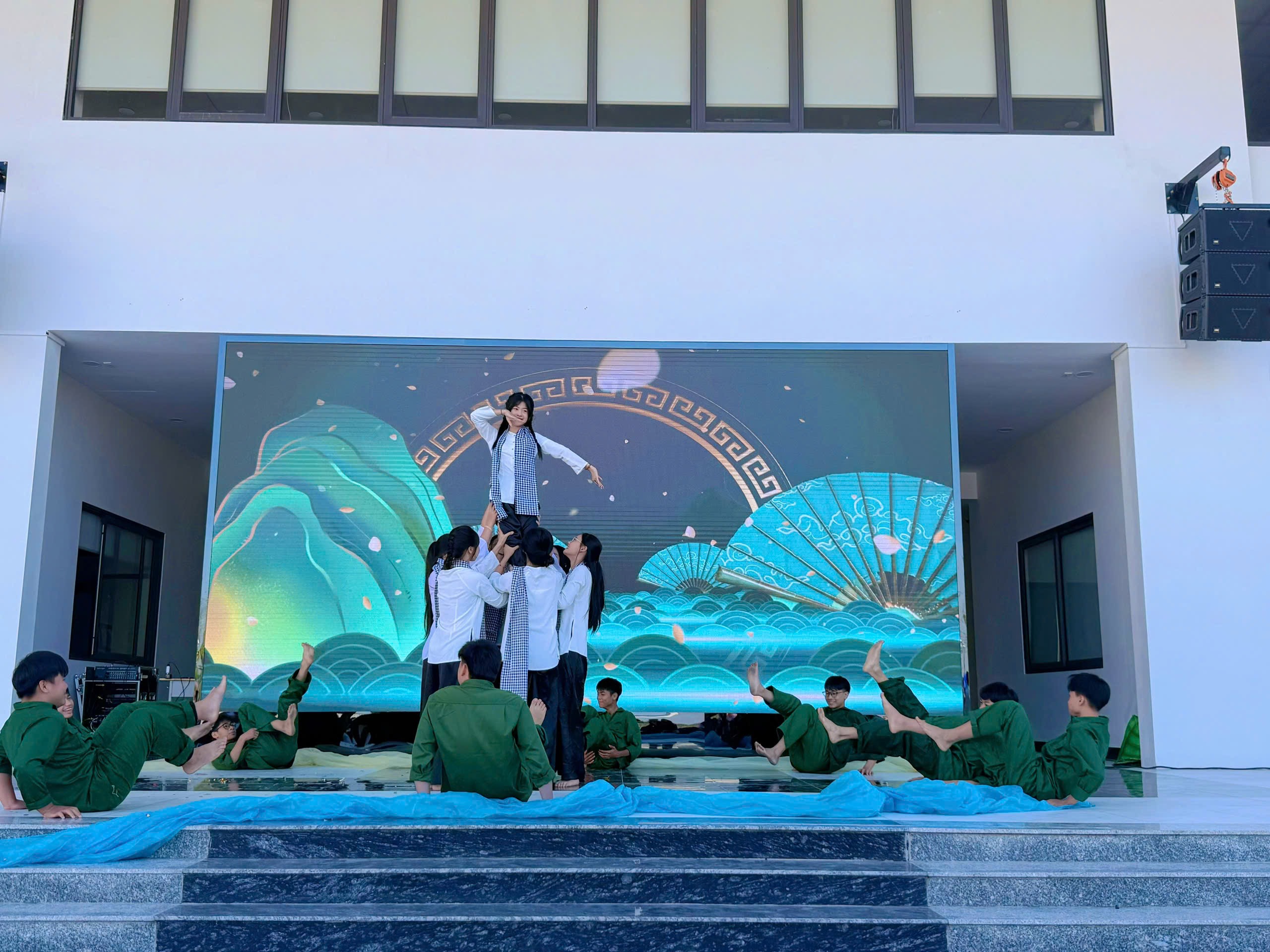 Ngay từ những giây phút đầu tiên, không khí tại sân trường đã nhộn nhịp và ngập tràn sự háo hức, rộn ràng. Các tiết mục lần lượt được trình diễn, mỗi tiết mục là sắc màu nghệ thuật riêng, phong phú và đầy ý nghĩa.