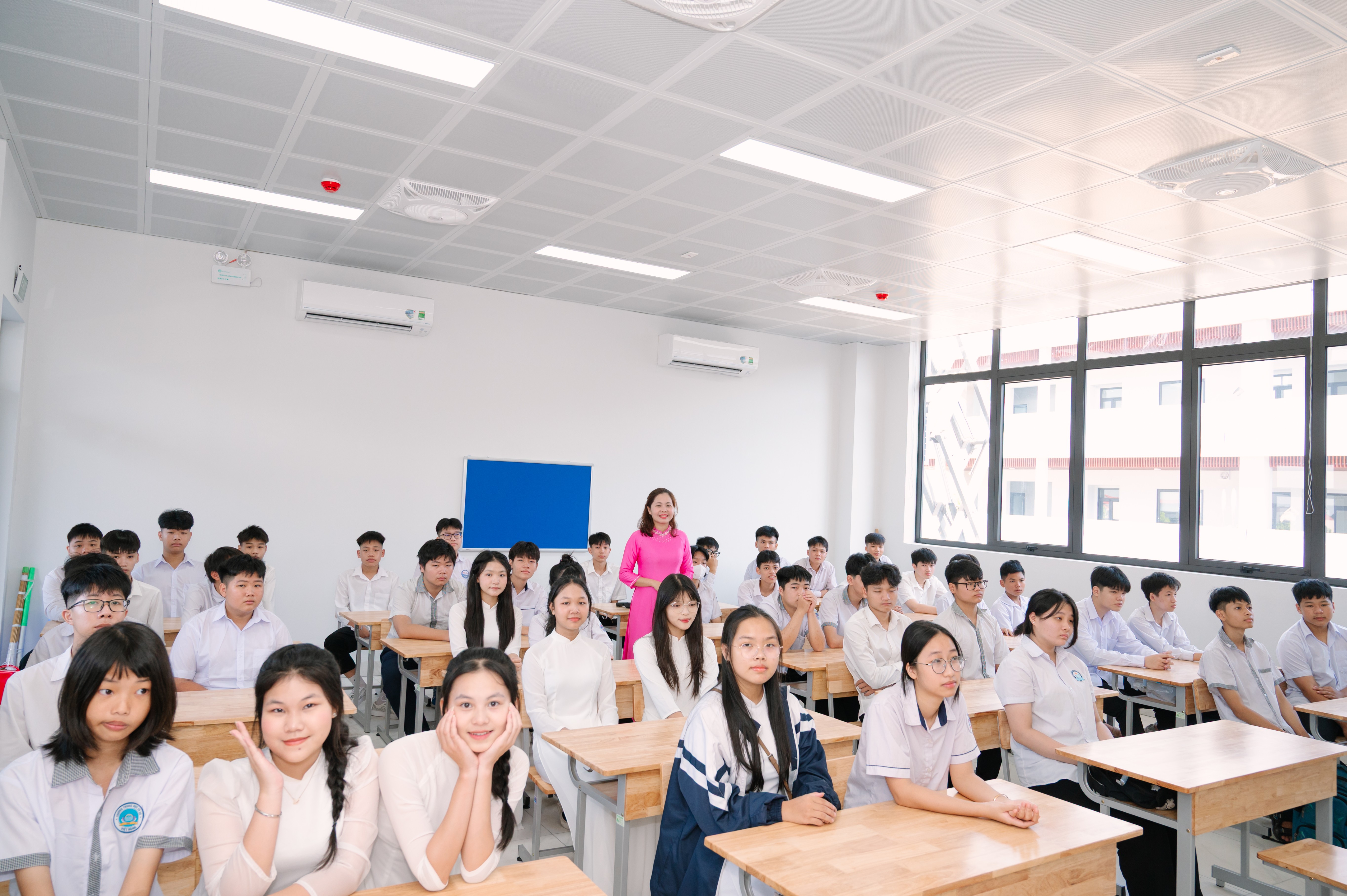 Học sinh mặc đồng phục gọn gàng, nghiêm túc.