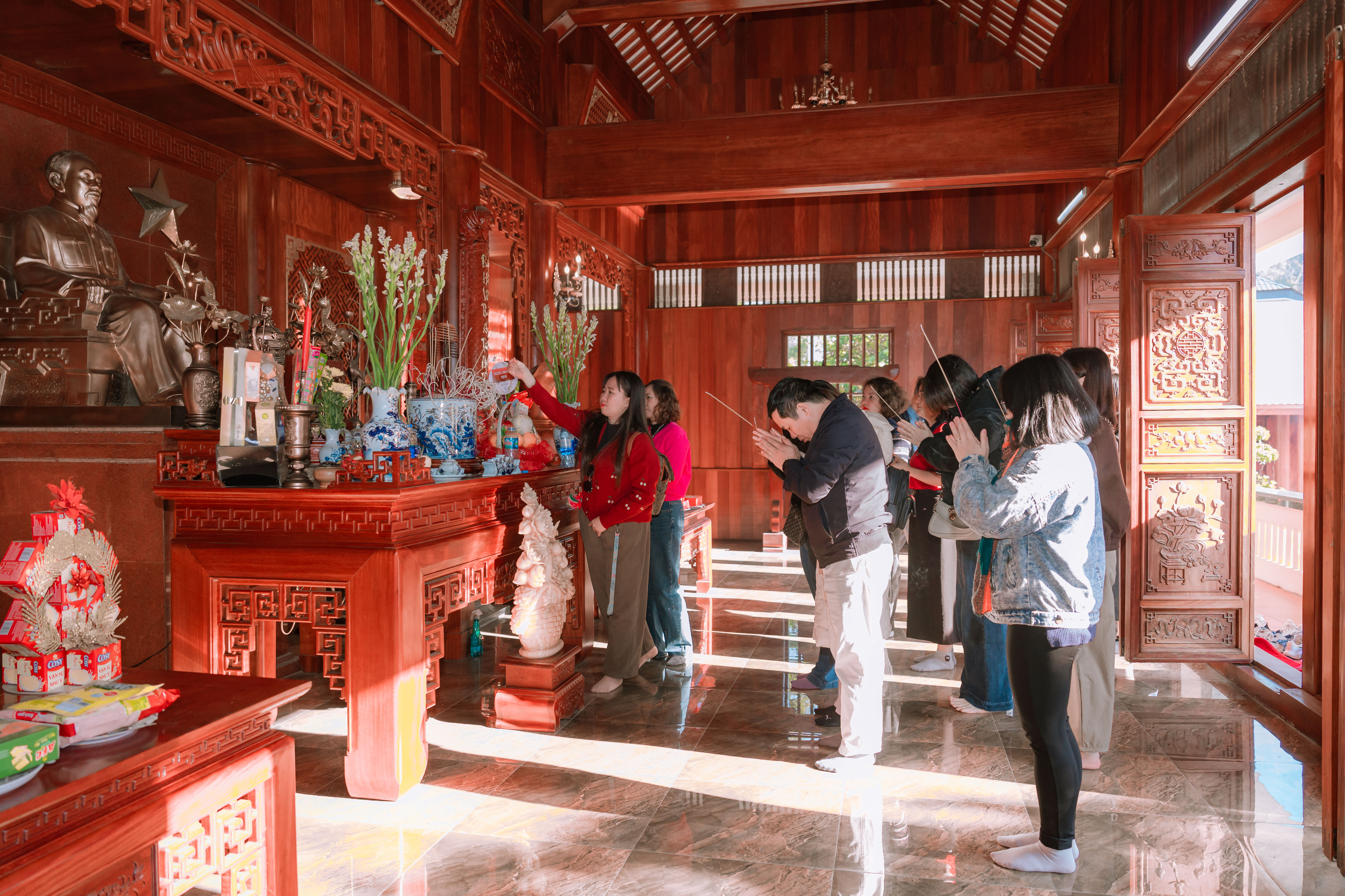 Trong buổi sáng ngày 29/10, thầy cô và học sinh đã dâng hương, tham quan Di tích lịch sử Đền Bác Hồ. Tại đây, các em được tìm hiểu thêm về công trình mang ý nghĩa chính trị – văn hóa – xã hội sâu sắc, góp phần giáo dục truyền thống cách mạng, tinh thần đoàn kết và ý chí vươn lên của nhân dân Lương Sơn, Phú Thọ.